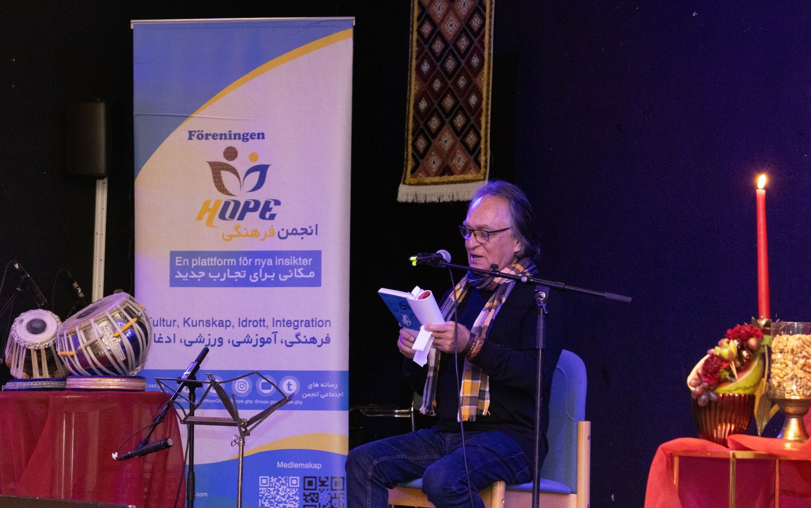 Marjan Asghari, programmets poet, framförde två stycken, och sedan framförde Anwar Fazel och Tamim Azizi en kombination av damboura och tabla, som fångade människornas hjärtan med Fazels behagliga röst och vackra framträdande.